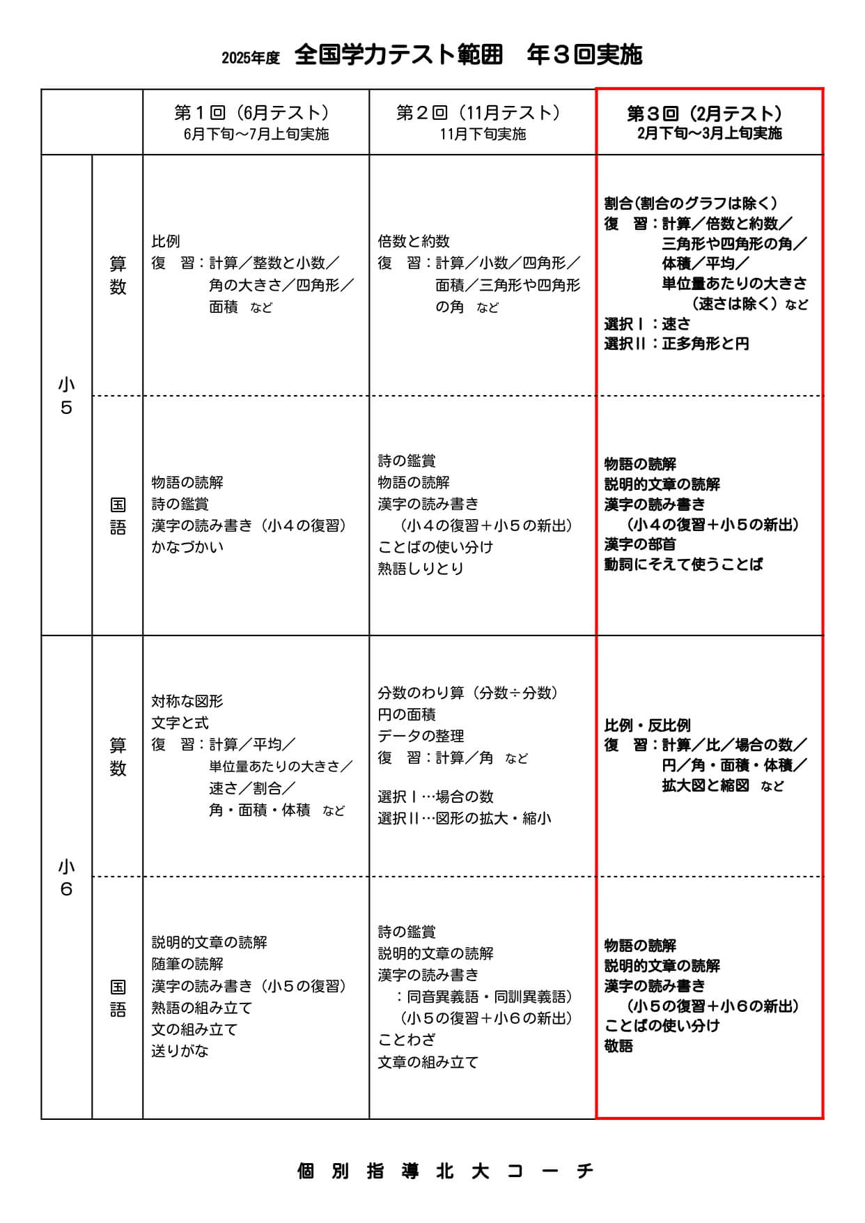 【小5.6】全国学力テスト 25年度第3回