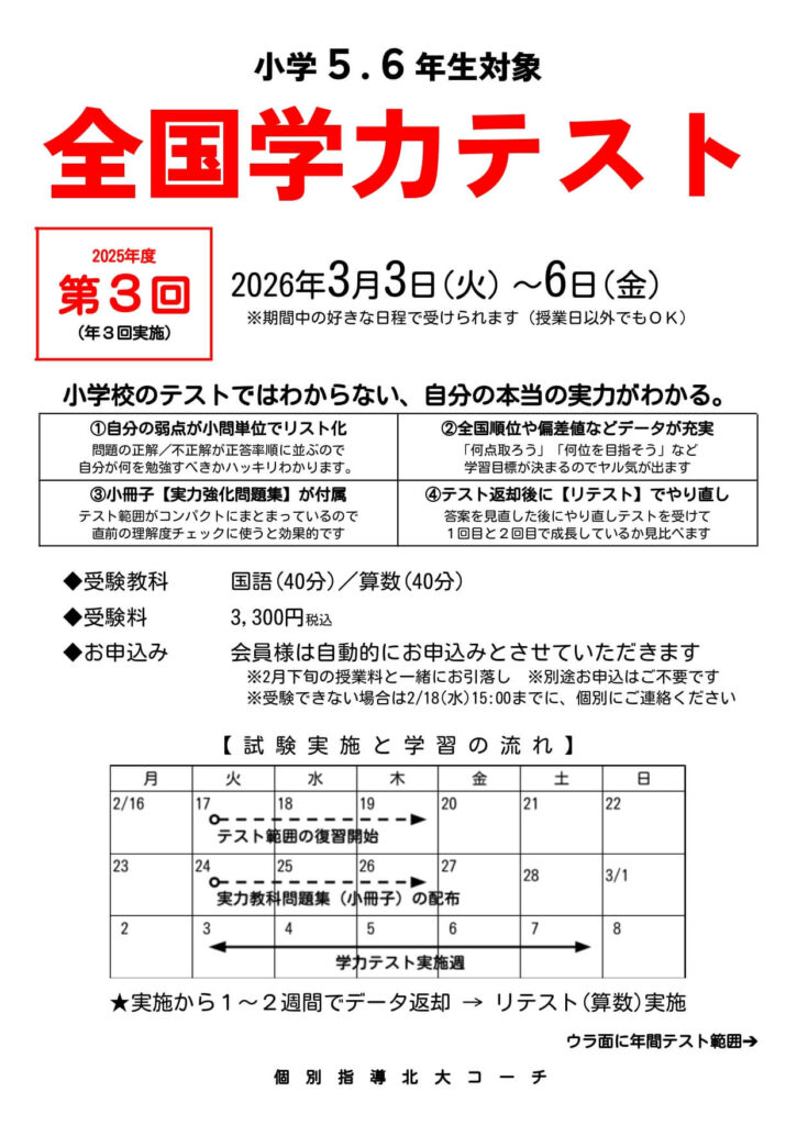 【全学年】26年3月春期講習