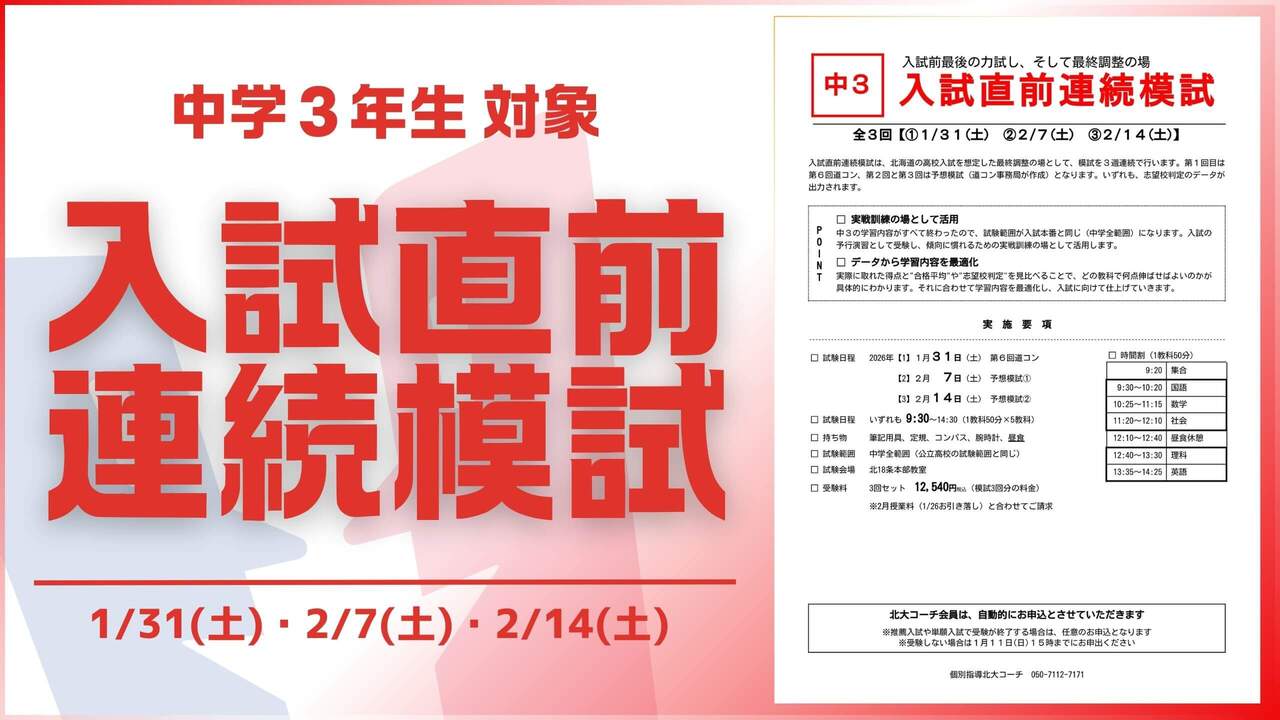 週明け21日(水)が定期テスト本番です。